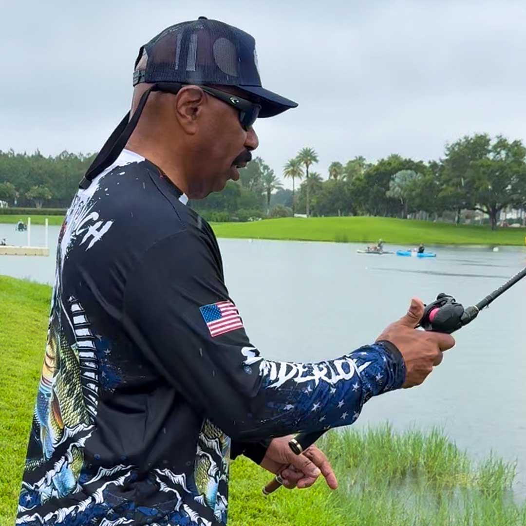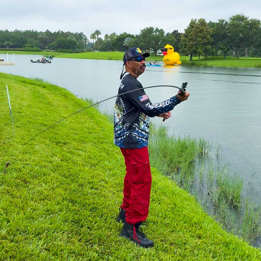 We had a surprise guest at the On The Water event—Steve Harvey stopped by our booth and tried one of our reels.